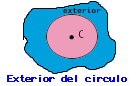 Un circulo separa al plano en tres partes. Una de esas partes es el exterior del circulo. Si un punto esta en el exterior del circulo; la medida del segmento uniendo el punto con el centro es mayor que la medida del radio.