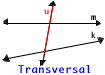 En un plano, la linea es una transversal si y solamente si esta intersecta dos lineas cualesquiera en dos puntos diferentes.