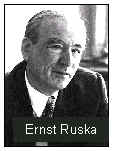El microscopio electrónico de transmisión (T.E.M.) fué el primer tipo de microscopio electrónico desarrollado este utiliza un haz de electrones en lugar de luz para enfocar la muestra consiguiendo aumentos de 100.000 X. Fue desarrollada por Max Knoll y Ernst Ruska en Alemania en 1931. Posteriormente, en 1942 se desarrolla el microscopio electrónico de barrido (SEM). |